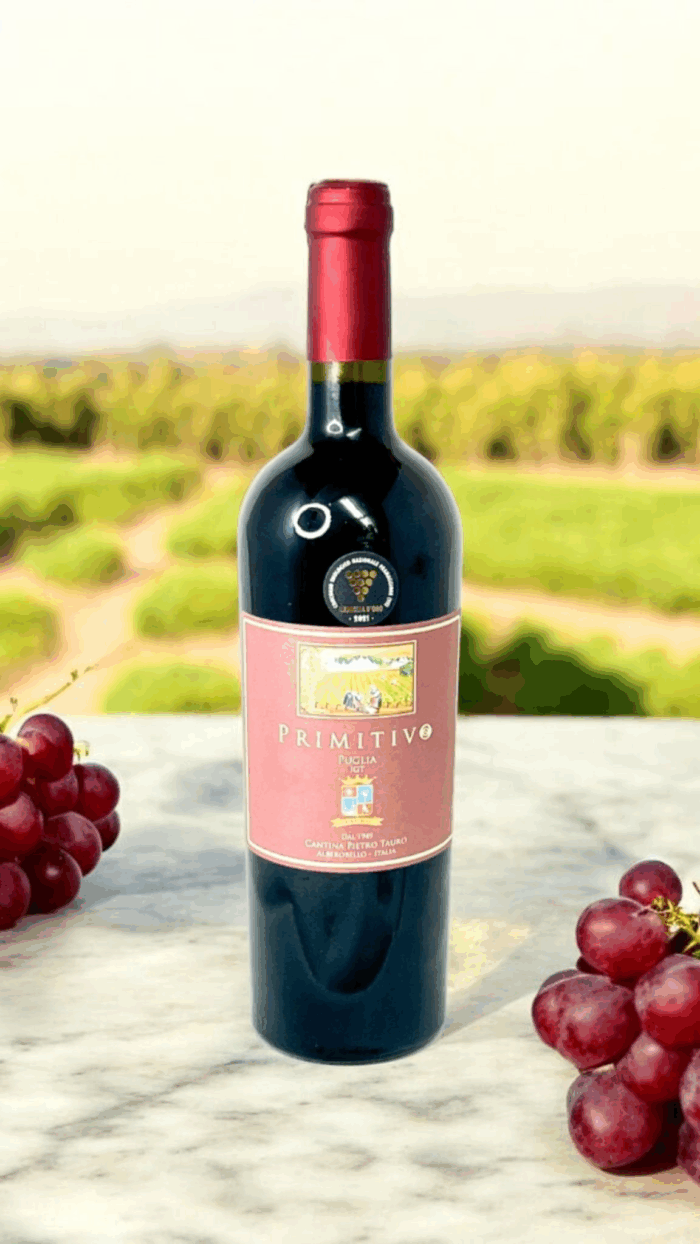 Storia del vitigno: Il Primitivo è un vino Rosso di buona struttura ottenuto dalle breve macerazione delle uve di Primitivo dei soci della cantina sociale Pietro Tauro di Alberobello.